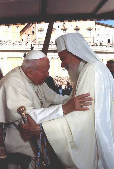 ARHIM. EFREM: Problema papei nu este o problema cu care se confrunta numai Biserica Romaniei, ci si Biserica Greciei si celelalte. Si cred ca in viitor vom asista la o evolutie mult mai ampla a acestei probleme. Pentru ca noul curent care sufla astazi in cercurile „Bisericilor”— intre ghilimele — este ca, „in numele dragostei, pentru a avea dragoste si trebuie sa avem dragoste — iar Vaticanul este izvorul care provoaca acest curent—trebuie sa facem si unirea bisericilor“. Si exista as