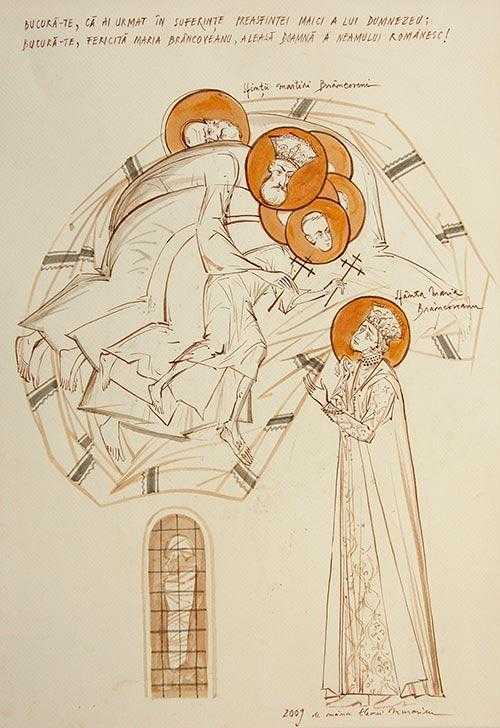 Intru acest temei apostolesc recitind cuvintele alcatuite de fiii sai, in sufletul Doamnei Maria s-a limpezit incununarea urcusului patimitor al familiei sale. Si pana astazi, dainuirea ctitoriilor brancovenesti inaltate spre Cer straluceste in chip tainic prin sangele pe care Mucenicii Brancoveni l-au varsat la temelia neamului romanesc si, deopotriva, al intregii firi omenesti”.