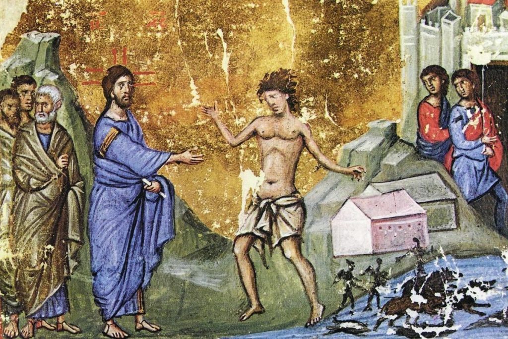 Paradoxal, Hristos asculta rugamintea diavolului si nu-i trimite-n pustiu, ceea ce ei insisi se temeau, ci ii trimite-n turma de porci, care se afla in apropiere. In turma de porci pentru ca vrea Hristos sa dea invatatura si sa si lamureasca ierarhia care depaseste timpul, care merge de la un capat la altul al lumii: cele ale Lui Dumnezeu si cele ce vin de la Dumnezeu mai intai, si pe urma celelalte. Porcii nu erau pentru viata celor de acolo, vorbim de poporul evreu care nu consuma carne de porc, ei aveau acei porci pentru afaceri pentru beneficiul lor si a vrut sa-i vadeasca in necredinta lor si a vrut sa rastoarne ierarhia pe care ei se dovedeste ca o aveau: ierarhia vietii. Pentru ca in curand, diavolii, care erau multi (legiune), au intrat in turma de porci, iar acestia s-au inecat. Si locuitorii si-au pierdut intreaga avutie si poate nu e usor acest lucru: daca facem un exercitiu de imaginatie si ne gandim ca de maine nu mai avem nimic din ceea ce ne producea subzistenta, cred ca nu ne-ar fi foarte confortabil si poate ca ne-am asocia si noi celor care au fost nemultumiti cu ceea ce s-a intamplat acolo, pentru ca suntem tare legati de lume si ne incredem foarte mult, aproape exclusiv, in siguranta care ne vine din bunurile pamantesti, si din pozitia sociala pe care noi o avem. Dar Hristos si aici se dovedeste consecvent cu tot ce a invatat El pana atunci: e consecvent cu grija fata de om, fata de persoana. E mai important in acest moment omul care sufera in fata lui decat ceilalti care o duc foarte bine.