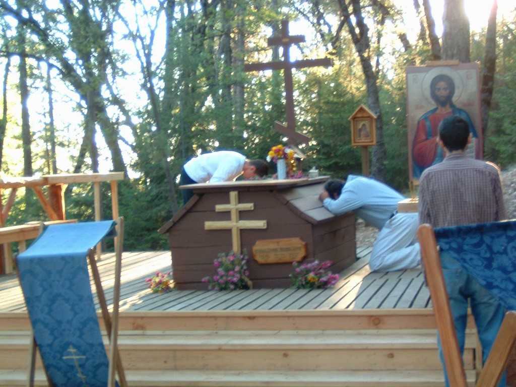 Holy Reliquary of St JohnUitându-mă spre altar, în chipul unui Părinte ce slujea am regăsit chipul Sfântului Ioan Maximovici. îmi întărea convingerea că este viu, că-mi ascultă năzuinţele. Aşa de minunat lucru! – cu o zi în urmă voiam să trec în grabă spre Platina, iar acum mi-am întâlnit un suflet atât de iubitor, pe care-l pot numi fără ezitare prieten al meu, şi nu un prieten ca oricare, ci unul pe care-l poţi chema la tine la orice oră din zi sau din noapte, care nu se supără că-l suni la o oră nepo­trivită, un prieten adevărat, care nu găseşte scuze când trebuie să te ajute!