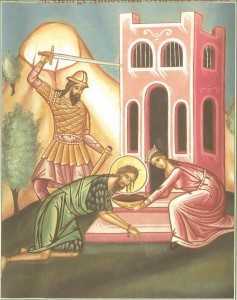 Insa daca trebuie sa patimesti pentru Domnul Hristos in aceasta lume, daca asupra ta navalesc oamenii din toate partile, ateii si luptatorii impotriva lui Hristos vor sa te nimiceasca pentru ca esti al lui Hristos, vor sa amuteasca buzele care vorbesc despre Hristos, tu atunci sa-ti aduci aminte de el, de intaiul Mucenic, sa strigi catre el: