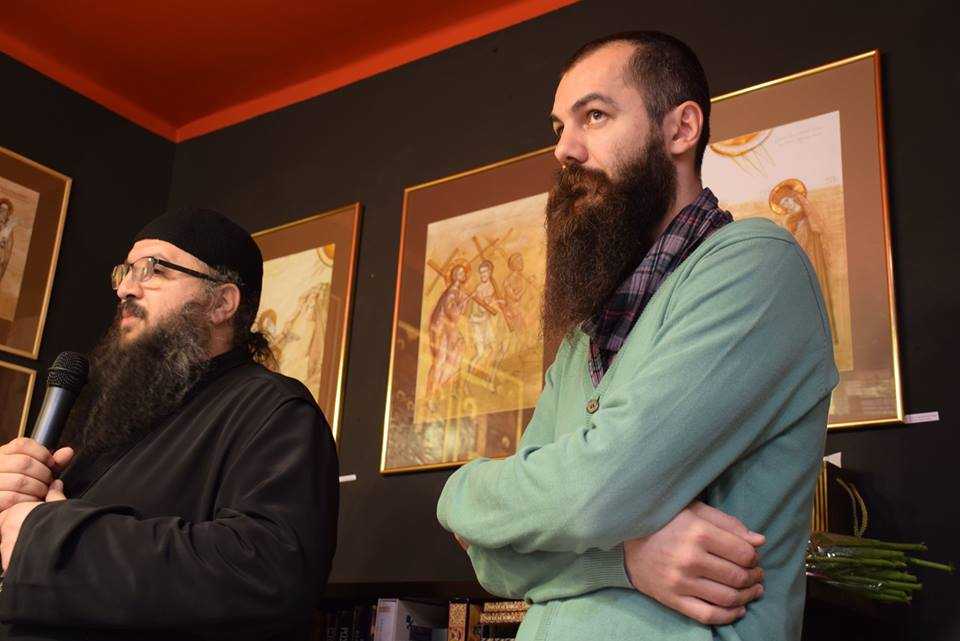 ELENA MURARIU, Sfanta Cruce si rugaciunea prin icoana (VIDEO). Fotografii de la vernisajul expozitiei “INALTAREA SARPELUI DE ARAMA” de la Libraria Bizantina, cu participarea parintelui STARET AL MANASTIRII LUPSA
