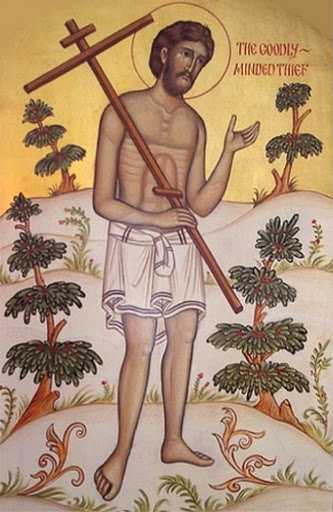 „Nu te temi tu de Dumnezeu, că eşti în aceeaşi osândă cu El? Şi noi pe drept, căci noi primim cele cuvenite pentru faptele noastre, Acesta, însă, n-a făcut nici un rău!”, în continuare a rostit acel cuvânt înfricoşător: „Pomeneşte-mă, Doamne, când vei veni în împărăţia Ta”. Şi în acel ceas a primit făgăduinţa de la Domnul Însuşi: „Amin îţi zic ţie, astăzi vei fi cu Mine în Rai”.